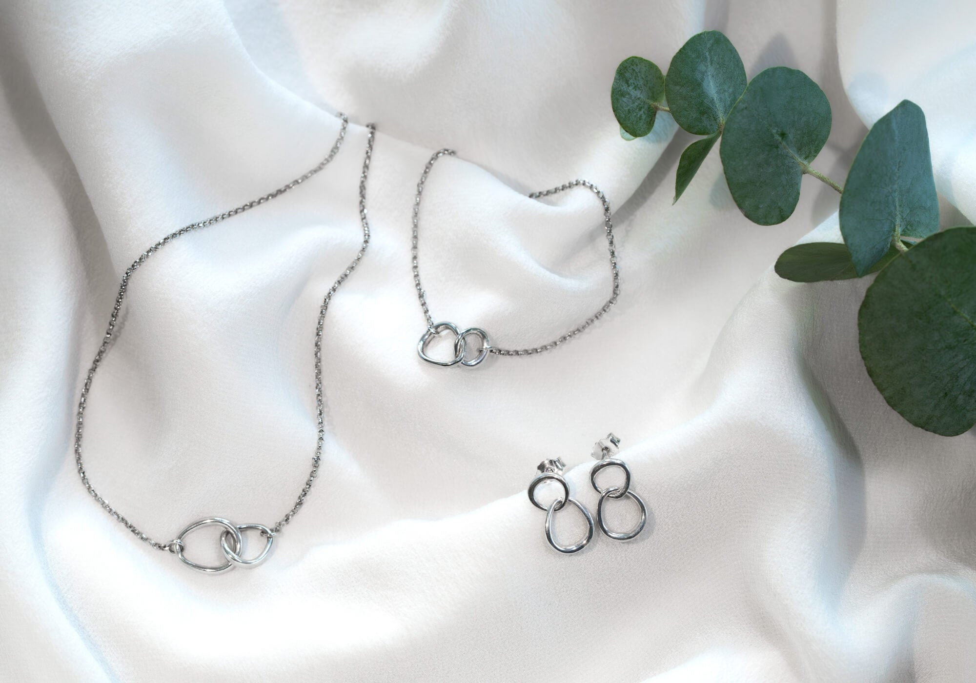 Välj smycken i rent återvunnet silver för en modern, stilren känsla. Våra silverhalsband, örhängen och ringar är klassiska val som håller livet ut.